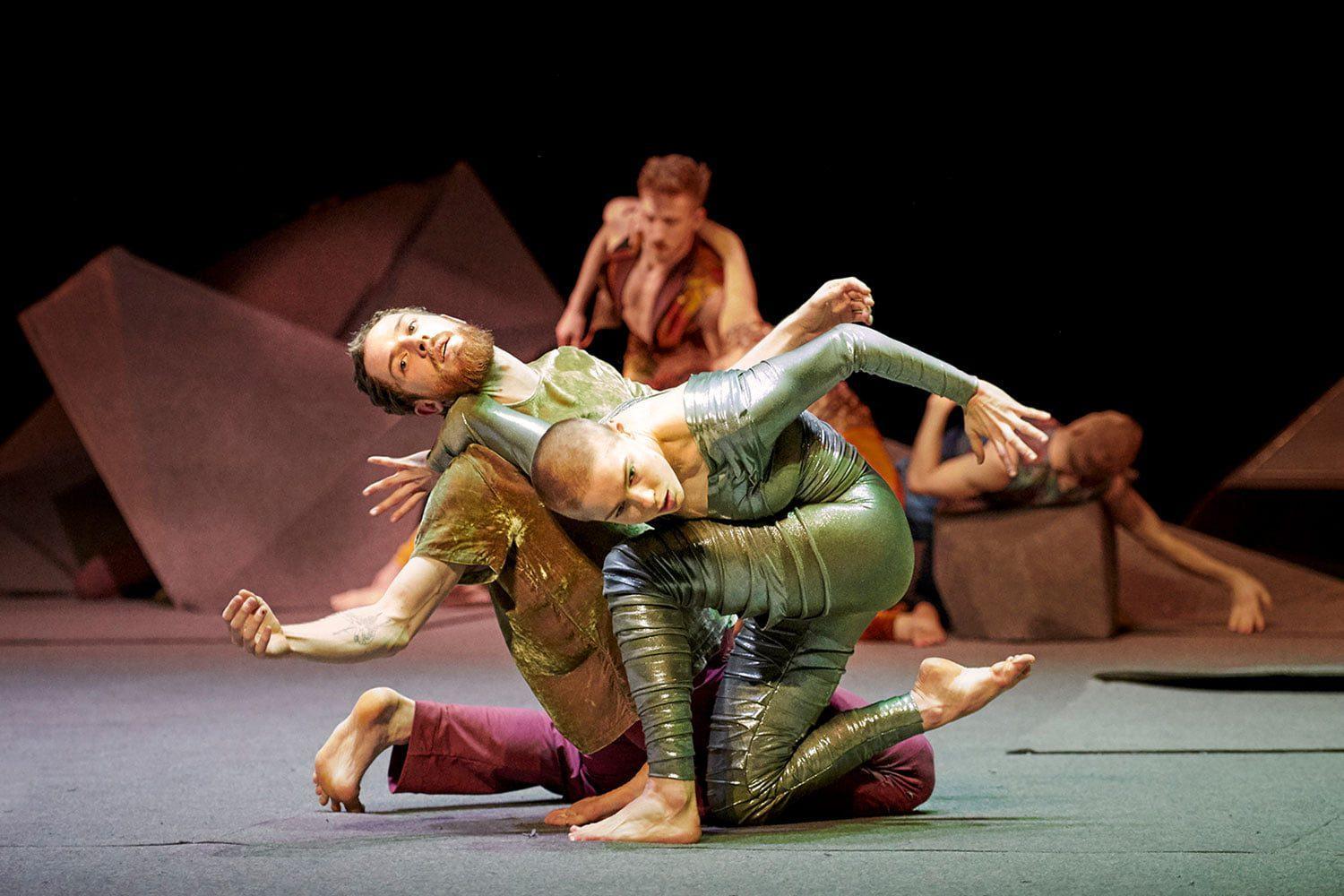 In 2019, musician Thom Yorke (Radiohead) invited Damien Jalet to imagine a choreographic response to his new solo album “Anima”. This was a follow up to their first collaboration on the film “Suspiria”, in 2018. Unlike their first collaboration, where Yorke composed to existing choreography already set on film, the idea this time was to see how the choreography could embody the songs and be the start of a new narrative. Working this time with leading American director Paul Thomas Anderson, the project took the shape of a 15 minute long “one-reeler” (a reference to the first silent comedic film which ran 12 minutes). The film discussions began with a concept from Yorke about workers whose “bodies don’t work any more”, that are being “pushed by an invisible force”. The team wanted the first sequence to be “oppressive and hyper-precise so it feels like a machine”. References being dystopian fantasies such as “1984” and “Metropolis”. Jalet integrated a whole section of his piece, “Skid” created in 2017 with the GöteborgsOperans Danskompani, whose dancers performs as well in this new film. Jalet was assisted by Aimilios Arapoglou, and Gabriela Cecena trained Yorke and Roncione intensively in order for them to dance through the entire film – sometimes on a 34 degree angled platform. The film was shot in in Baux de Provence, where Jean Cocteau filmed “The Blood of a Poet”, as well as in the streets and metro of Prague May 2019.