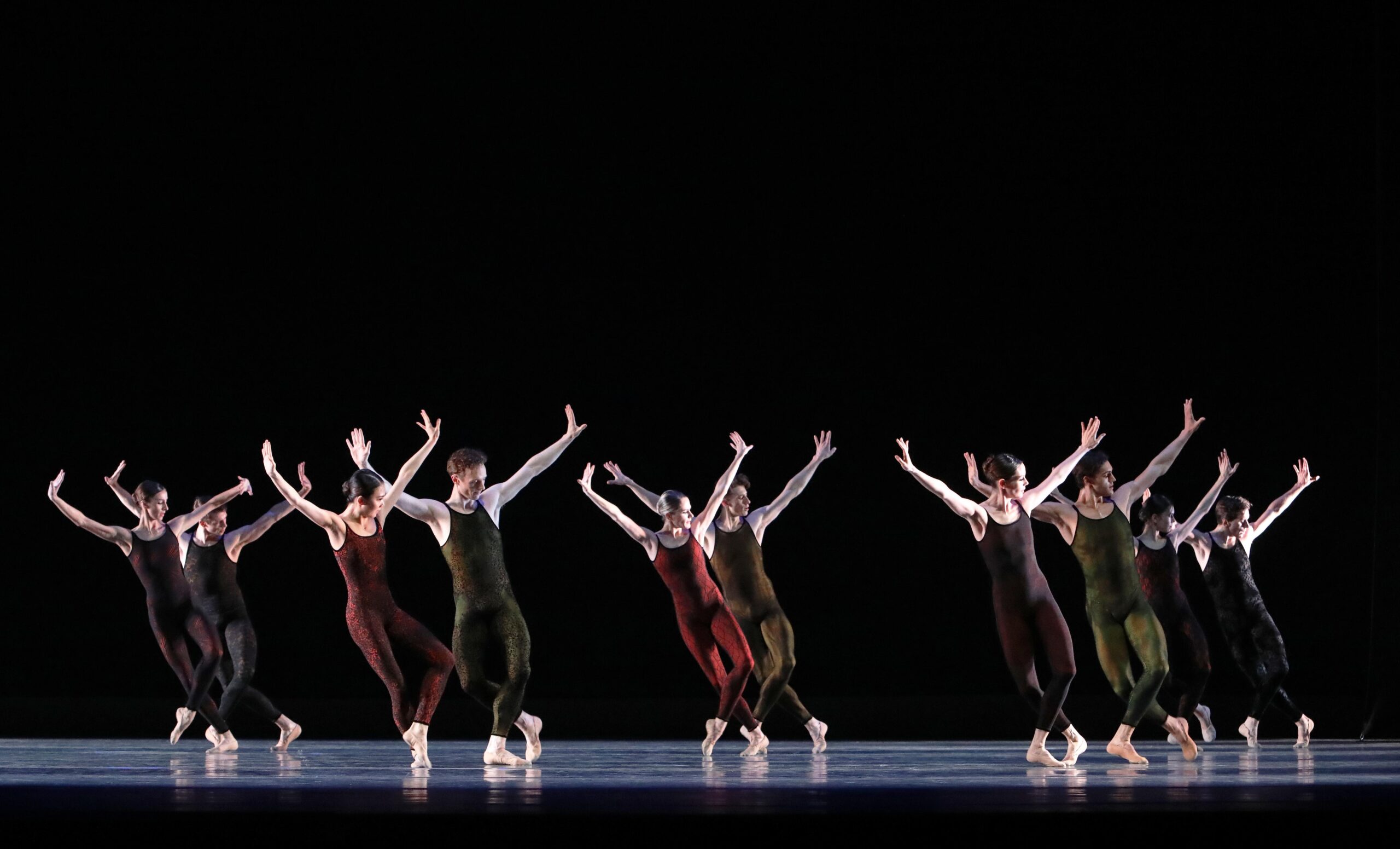 Polish Pieces by Hans van Manen explores the tension between the sexes. A group of six female dancers and a group of six male dancers are set in direct opposition to one another. When they come into contact, a series of duets emerges.